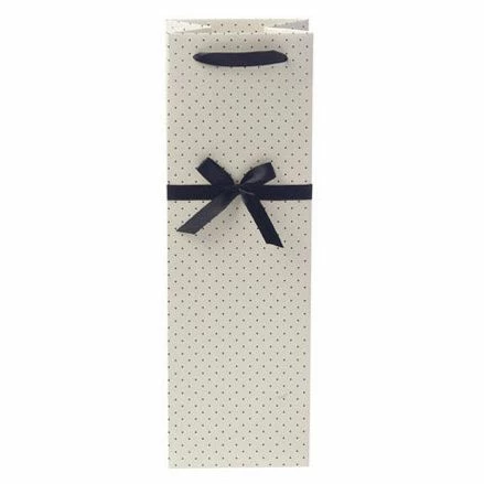 Sweet and sophisticated, these elegant Dainty Details Cream Wine Gift Bag are peppered with polka dots and come with gift cards in vellum envelopes. Our Dainty Details Cream Wine Gift Bag has black dots and is tied with black ribbon with matching handle.