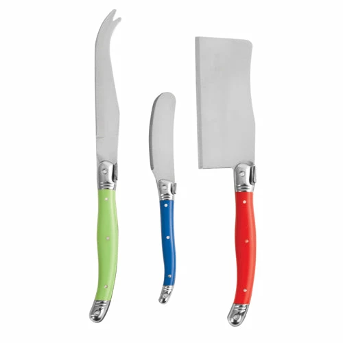 This colorful collection includes three types of cheese knives perfect for entertaining or gift giving. The pine wood tray doubles as a small cutting board and is compact for easy storage.